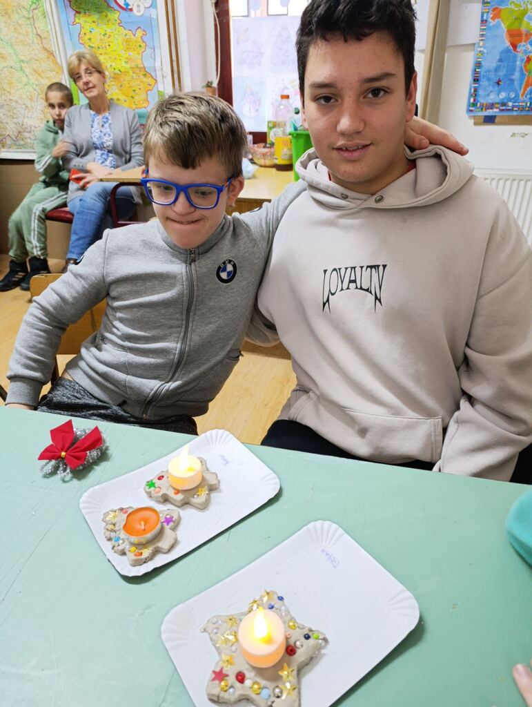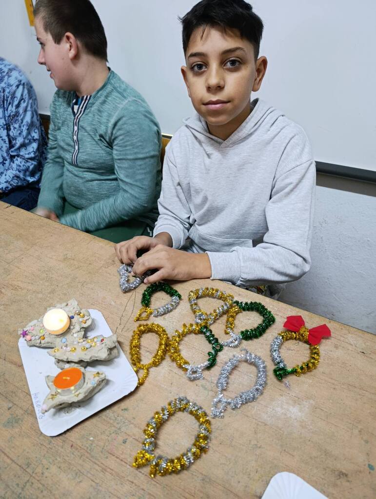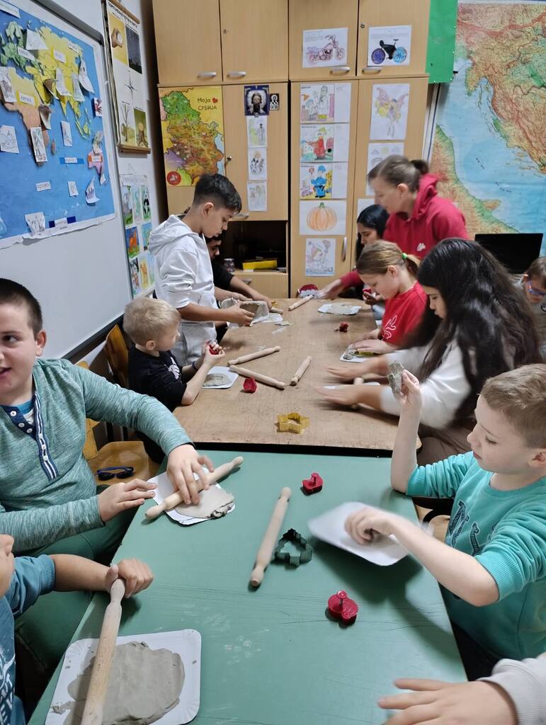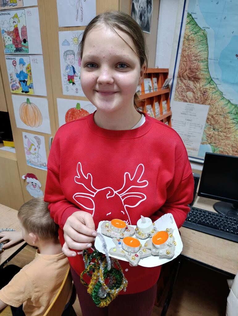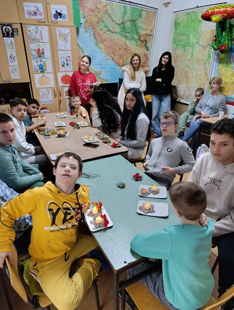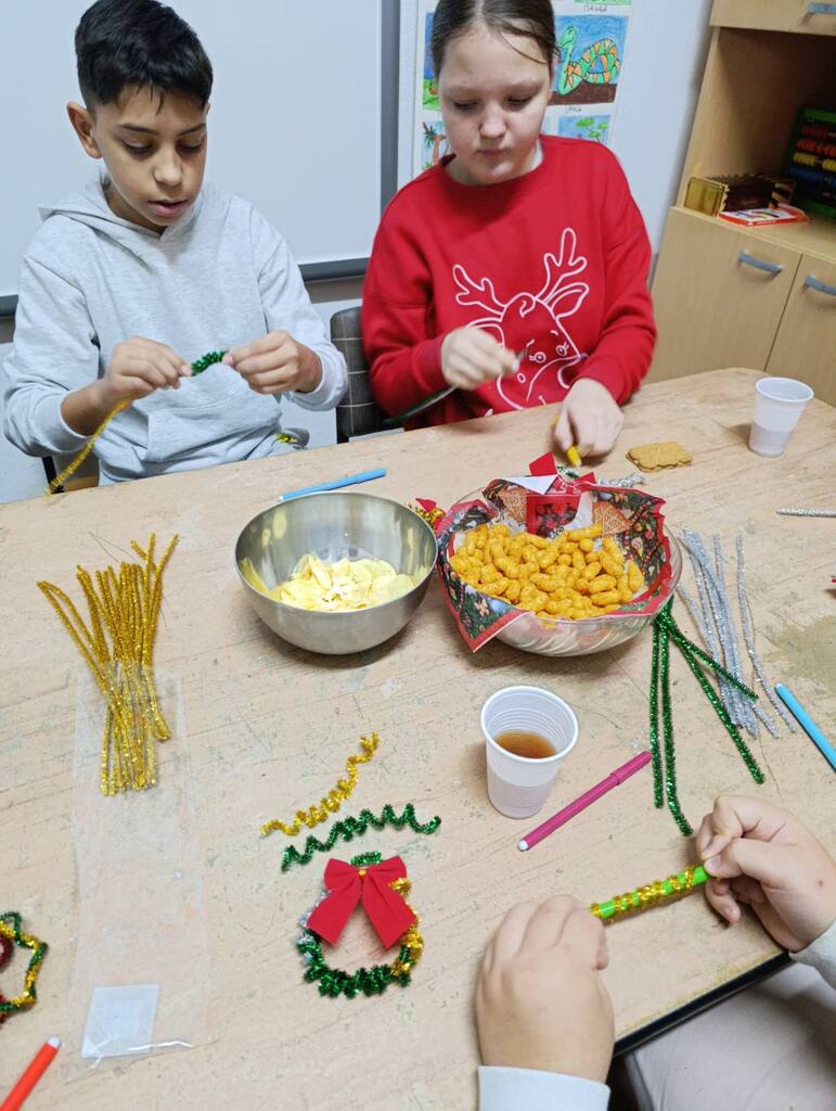 Наше драге пријатељице из удружења ОМ поново су са нама. Овога пута смо израђивали новогодишње украсе за нашу школу. Радионица је протекла у лепом расположењу, са пуно креативних идеја . Резултат тога су предивни новогодишњи украси , којима смо украсили нашу школу.